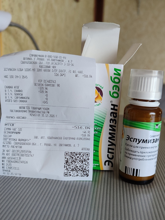 Всё это котеечку совершенно не смущает. Равно как и то, что животик её выдает нагора довольно много газиков (ненуачо, принцессы тоже пукают ). Поэтому ей еще Эспумизанчик надо попить, купили вот (516,04р.) Дети такие дети…