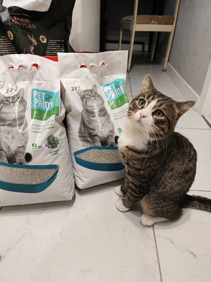 Мы продолжаем затаривать котиков полезностями и вкусностями. Мякишу приобрели мешок корма Проплан стерилайзд (лосось), 10 кг – за 8499р. И 2 пакета комкующегося наполнителя (9 кг каждый) – на сумму 848р. Благодарим за помощь!