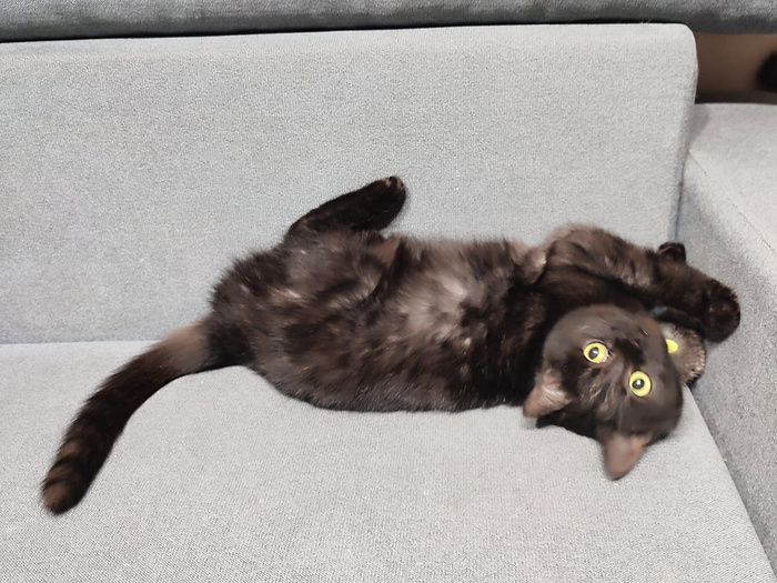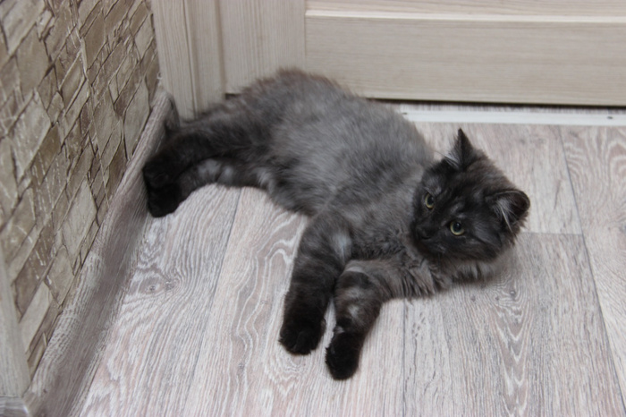 Пора представить вам новое котэ, место под которое так загадочно появилось на 1й страничке темы Оно имеет один из самых завораживающих окрасов: черный дым. Да, да, эта новенькая («котэ» оказалось всё же кошкой) довольно сильно похожа на Мистика. Только она гладкошерстная. Но с такой же