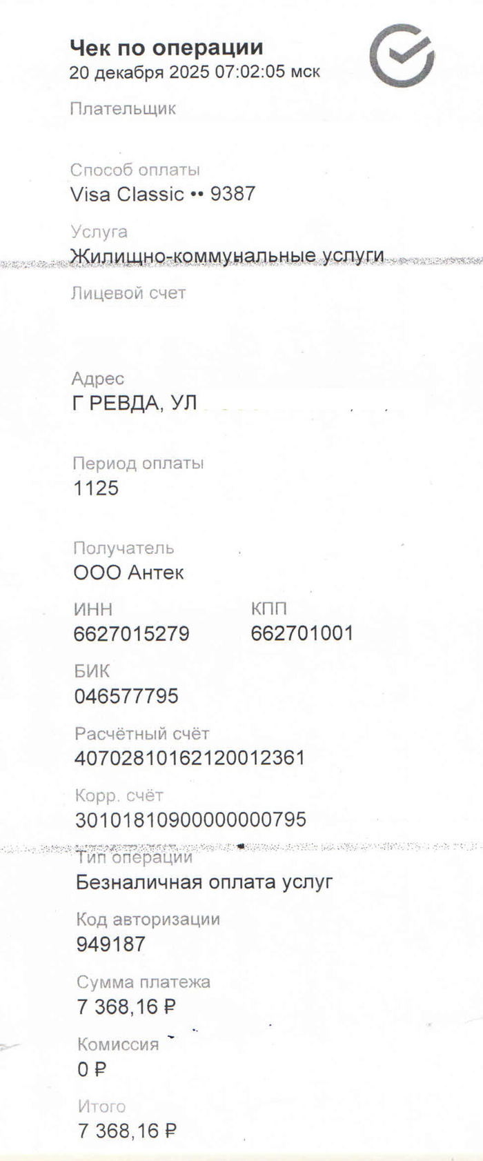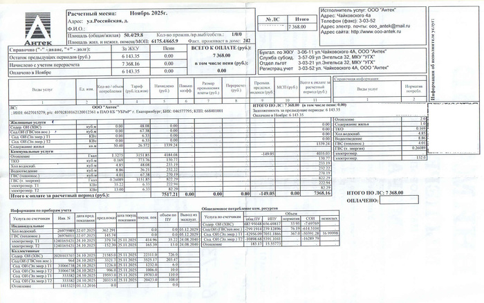 - 7368,16р. (20.12.2025) - оплата коммуналки в котоквартире за ноябрь-2025