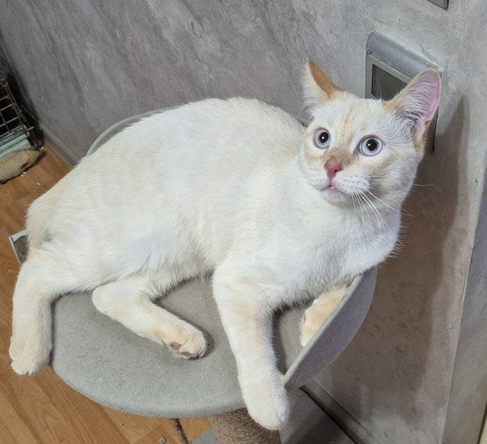 Я думала, что она беременная, оказалось, что родила несколько дней назад, но молока не было, соски не рассосанные (видимо котята были мертвые или сразу погибли), зато оказались сильные проблемы с маткой (даже до стерилизации было много коричневых зловонных выделений). Лечили. Спасибо огромное Алене, которая согласилась принять ее, да еще и обеспечивала ее самостоятельно. С начала 2025 года киса у нас. Характер у кошечки чрезвычайно э-э-э.. независимый. Недолюбливает и побаивается сородичей, а вынуждена жить в большом коллективе, возможно злится именно по этой причине. Постоянное проживание в стрессе делает характер еще хуже, киса замыкается. Надо срочно что-то с этим делать, но не знаю, где брать место без кошек или с небольшим числом кошек. Может кто-то сможет помочь? А может кто-то влюбится?