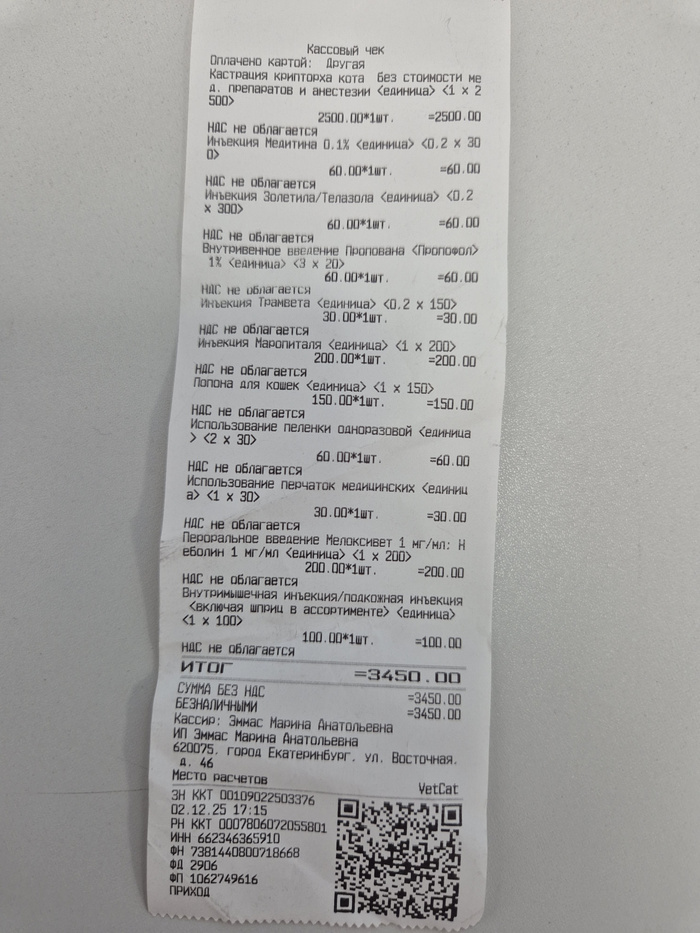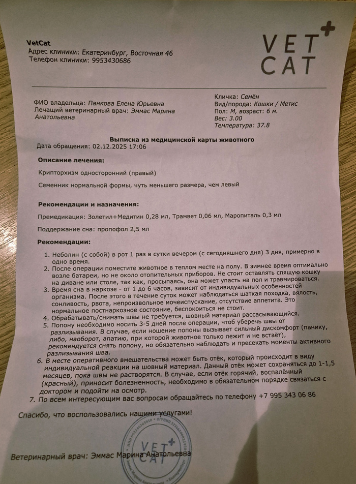 02.12 Кастрация котенка Семена (крипторх) -3450