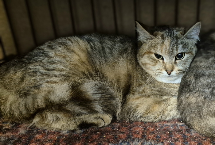 Кошки мама и дочка. Возможно их историю кто-то видел в ВК (с ними еще был котик-сынок белый с серыми пятнами). В снегопадный день их принесли в рюкзаке дети в церковь на Уралмаше. Это та самая церковь, откуда у нас побывали "церковная киса" с кучей котят. Детей отправила мама, т.к у "ребенка аллергия". Усилиями девочек, работающих в церкви, котик-сынок был куда-то пристроен. Девочки-кисы остались.