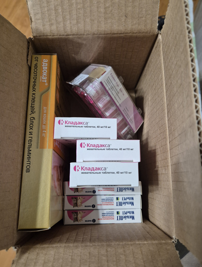 Также отчитаюсь по ветеринарно-лекарственным расходам прошедшей недели. Купила опять вакцины, было уже очень нужно и для оставленных садовых кошечек и ревакцинация. Плюс кладакса доя Сережи. Кроме того, была большая скидка на обработку адвокат и мильбепет. Взяла понемногу.