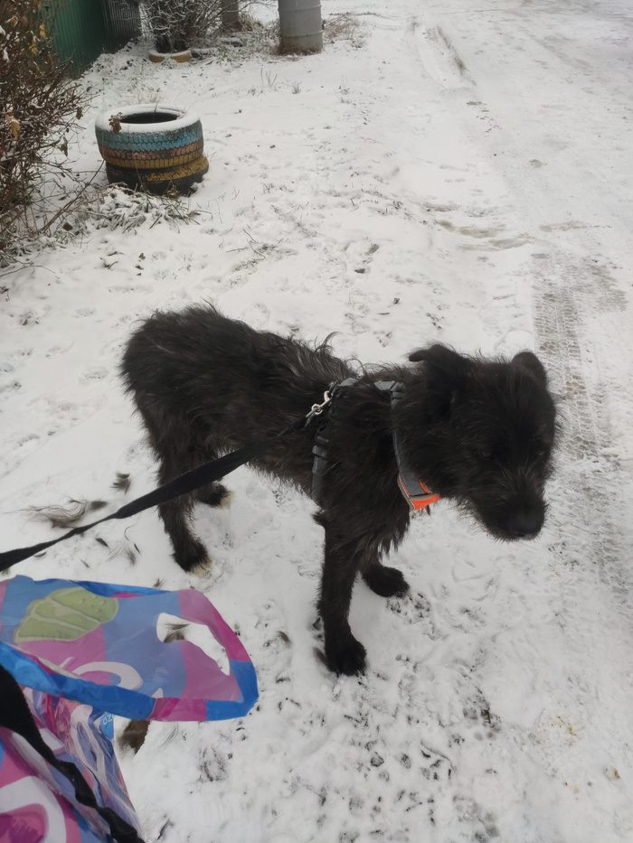 отражающей шлее и с длинным поводком на Старой Сортировке не далеко от трамвайного кольца. Собакен за три дня не привык ни к нам, ни к дому, конечно. Усилиями местного форума две недели искали, тогда снег немного помогал - следы лап собаки и поводка отличительны были и люди по аммуниции больше на