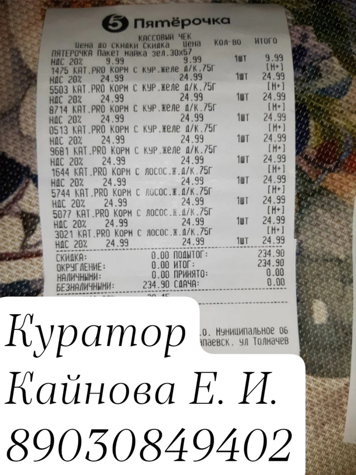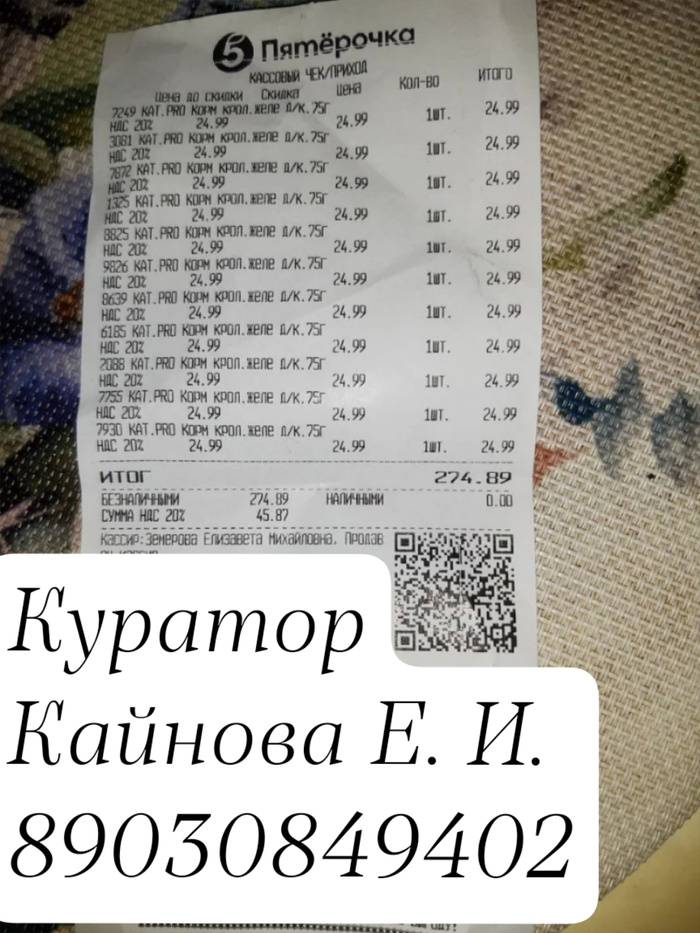 Помощь в покупке сухого и жидкого корма передержке Декабрь
