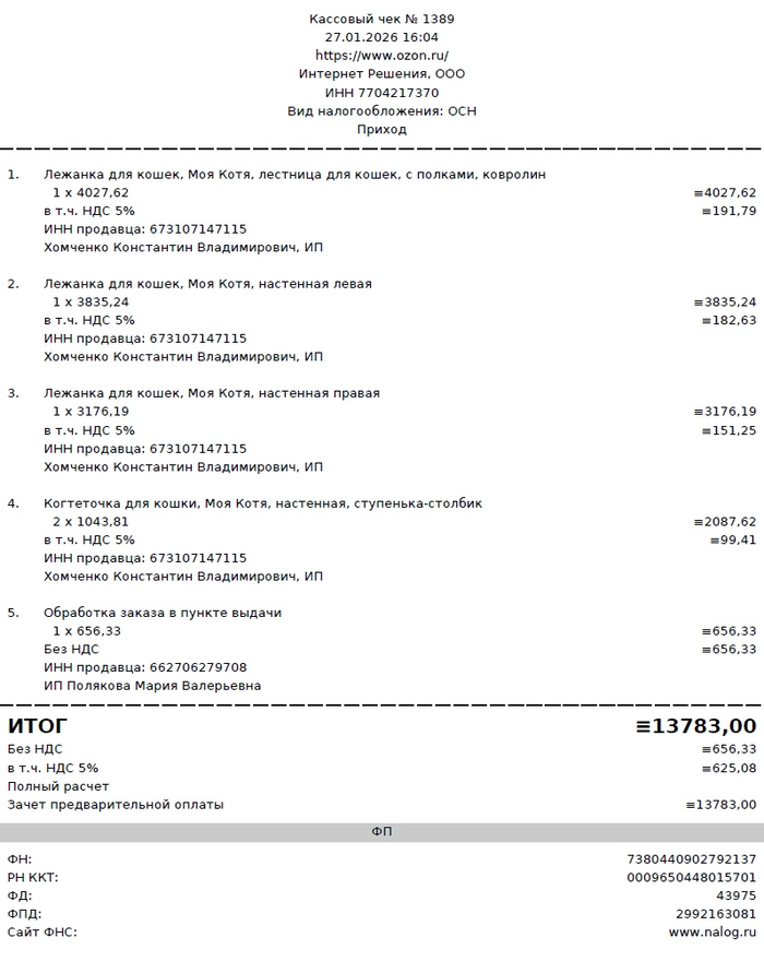 - 13783р. (27.01.2026) - полочки-лазалки для обогащения среды в котоквартире.