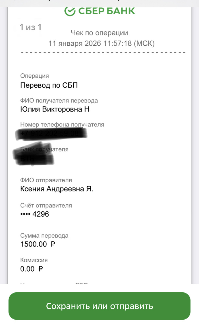✳по номеру телефона, привязанному к карте: 89120309059 — получатель Ксения Андреевна Я.
