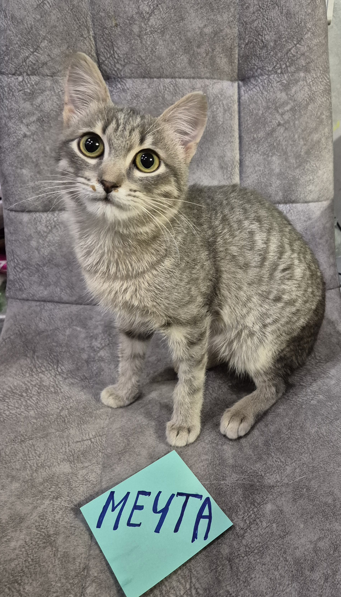 Еще в 2023 году котята были пойманы, отправлены на передержку, передержка отказалась от них, так попали к нам. Были у меня с 20.06.2023. Сейчас на передержке у Екатерины. Возраст - 2+ года (д/р примерно 15.03.2023). Довольно не плохо ведёт себя в коллективе котиков и знакомых людей. Но если прихожу я, то мне почти не удаётся её даже увидеть. Красивая, гладенькая и ладная. Была снята с пиара по причине несоциализированности. Но если найдется смелый кандидат...