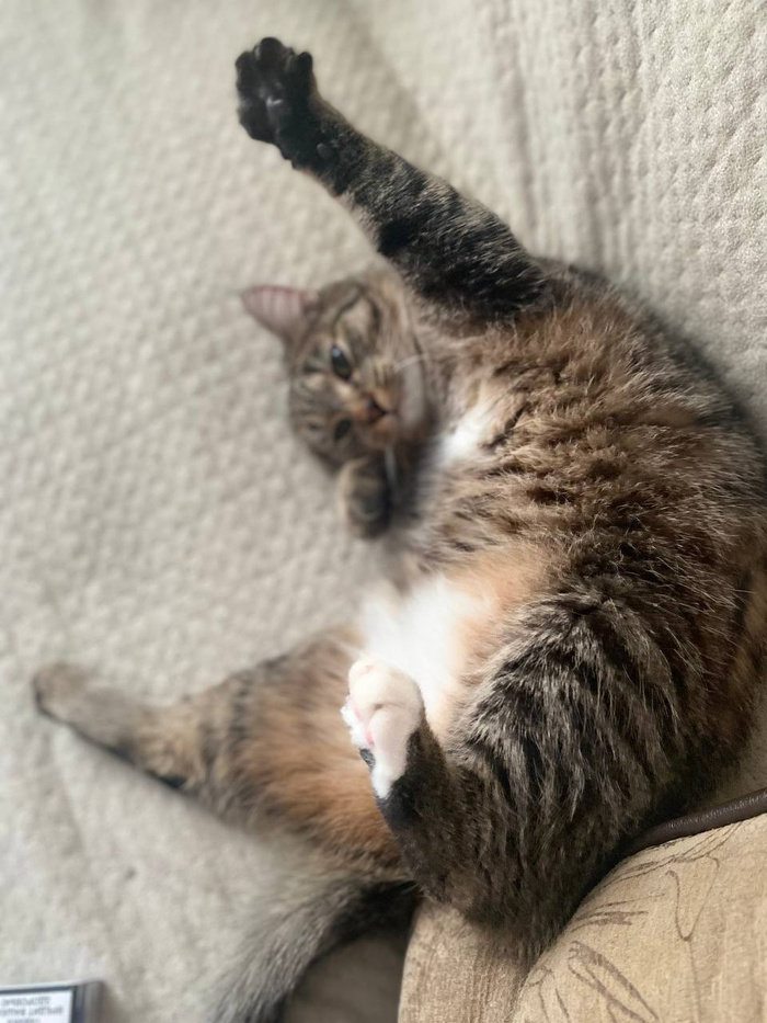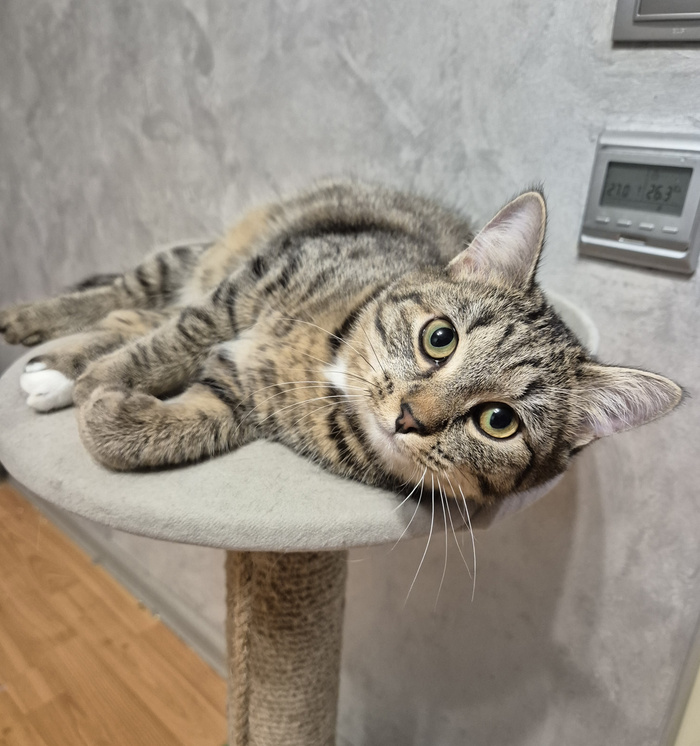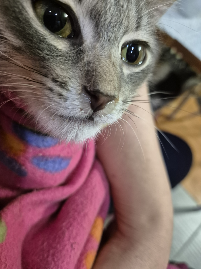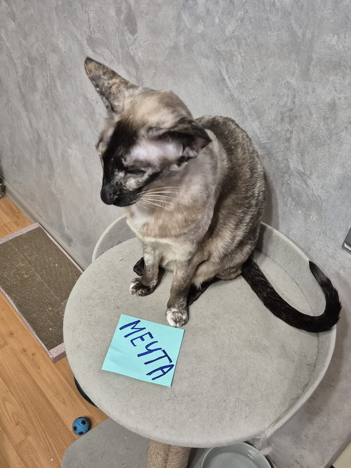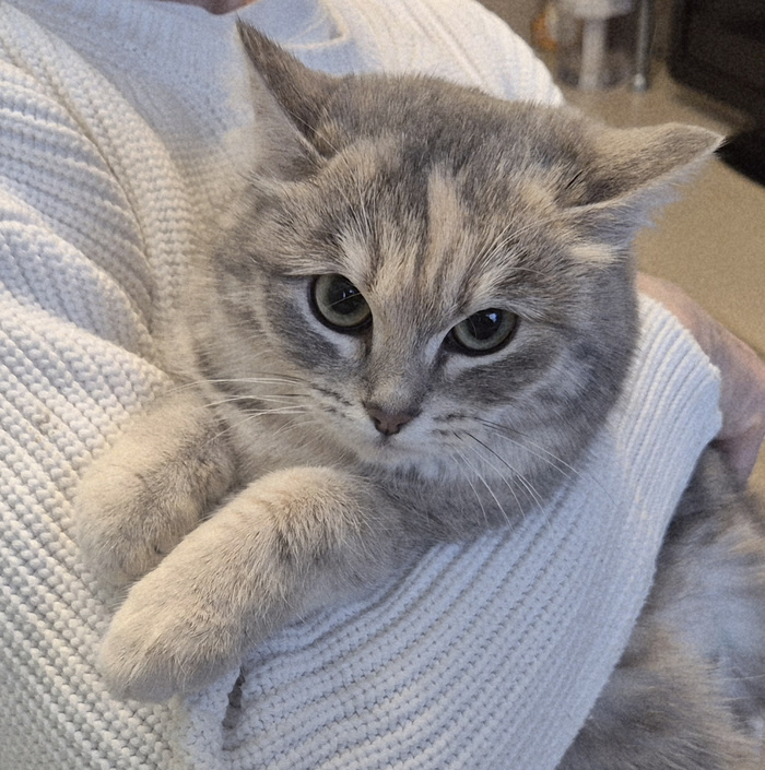 Я думала, что она беременная, оказалось, что родила несколько дней назад, но молока не было, соски не рассосанные (видимо котята были мертвые или сразу погибли), зато оказались сильные проблемы с маткой (даже до стерилизации было много коричневых зловонных выделений). Лечили. Спасибо огромное Алене, которая согласилась принять ее, да еще и обеспечивала ее самостоятельно. С начала 2025 года киса у нас. Характер у кошечки чрезвычайно э-э-э.. независимый. Недолюбливает и побаивается сородичей, а вынуждена жить в большом коллективе, возможно злится именно по этой причине. Постоянное проживание в стрессе делает характер еще хуже, киса замыкается. Надо срочно что-то с этим делать, но не знаю, где брать место без кошек или с небольшим числом кошек. Может кто-то сможет помочь? А может кто-то влюбится?