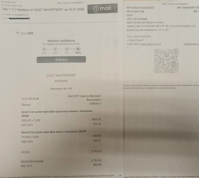 Cегодня доставка корма с Ленты, завтра с Петшопа.