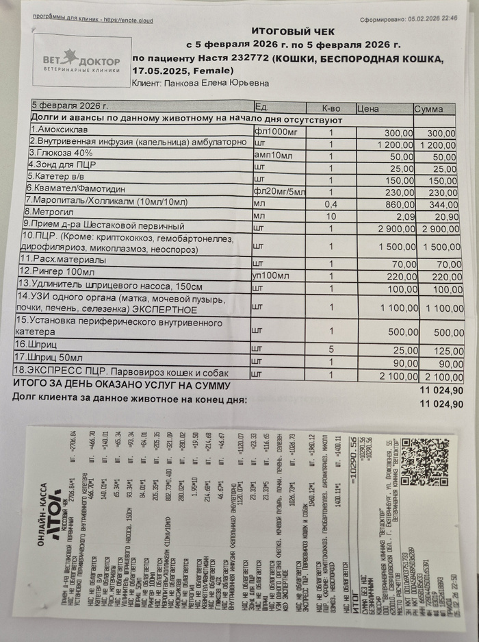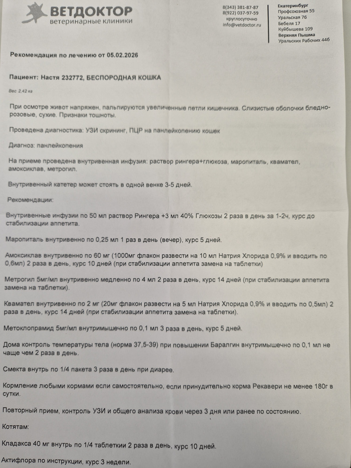 05.02 Приём, узи, анализы, капельница кисе-маме (Ветдоктор) - 10290