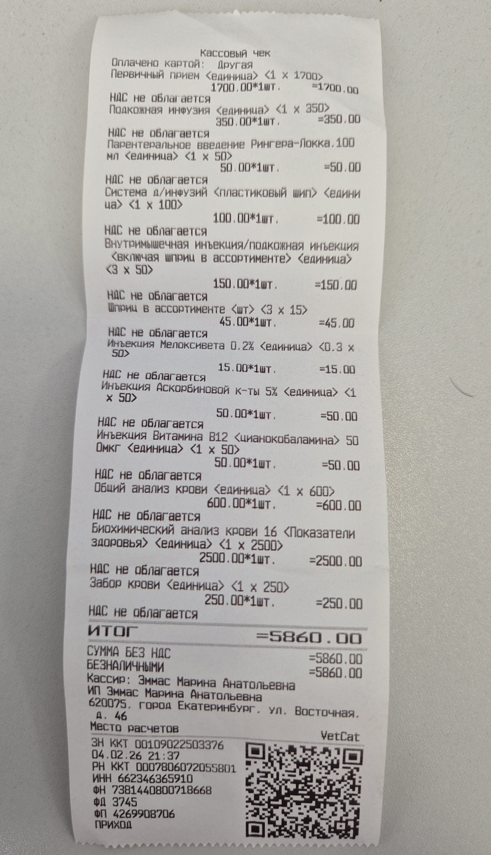 04.02 Приём, анализы, капельница кисе-маме (ВетКэт) -5860