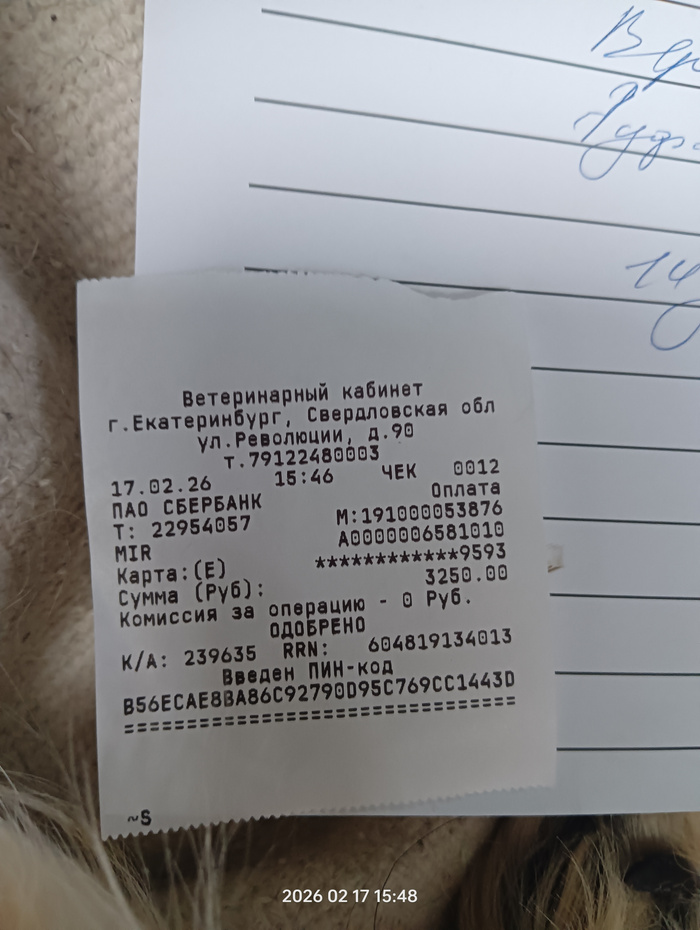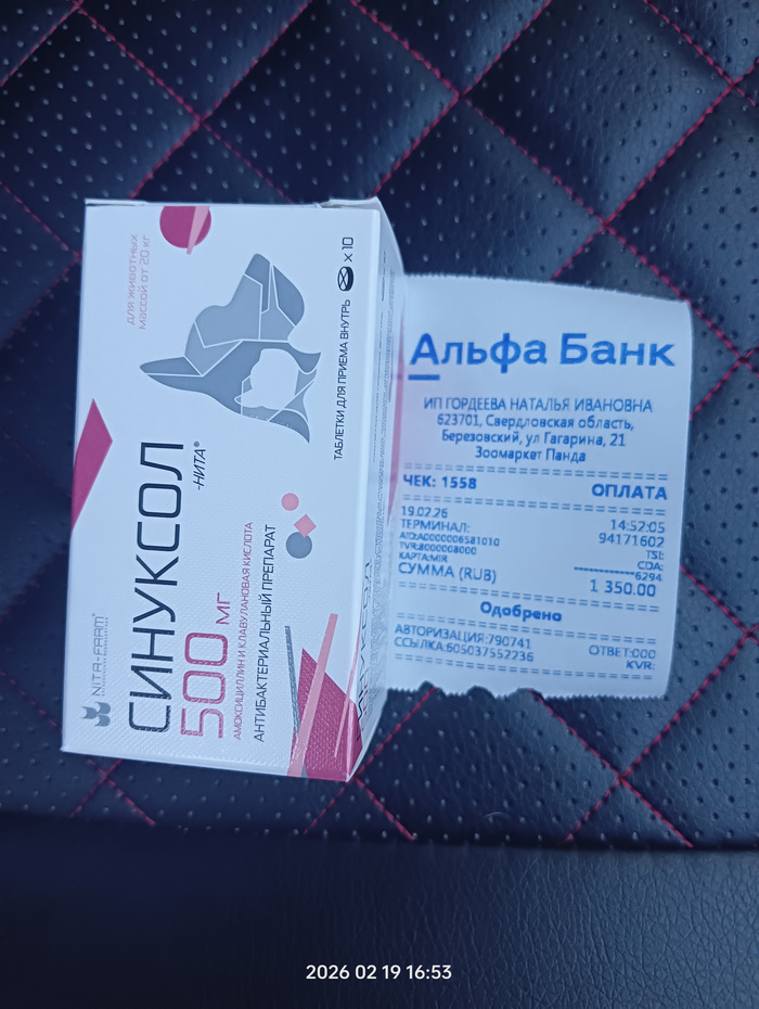 Чек на покупку антибиотика для прооперированного Пончика