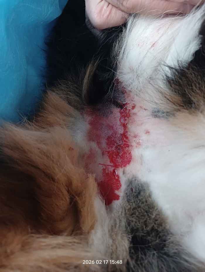 У котов снимали швы у Тиши снимали швы с уха, а у Персея швы с мочевого пузыря, удаляли камни