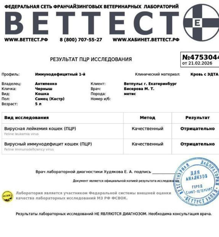 Температура норм, вес набрал,не худеет, все слипшиеся клочья сбрили, сдали ПЦР на опасные болезни. Выявили глаукому, повышенное давление глаз.