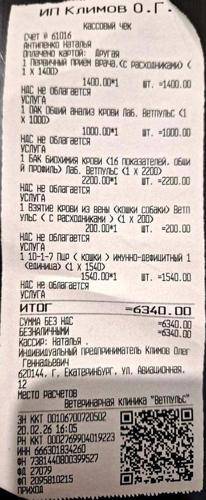 Черныш чихает, кашляет, глаза слезятся, рвота с шерстью. Шерсть на спине скаталась как валенок, жирная. Сразу к врачу, анализы, прием и снова огромные ДОЛГИ!!!