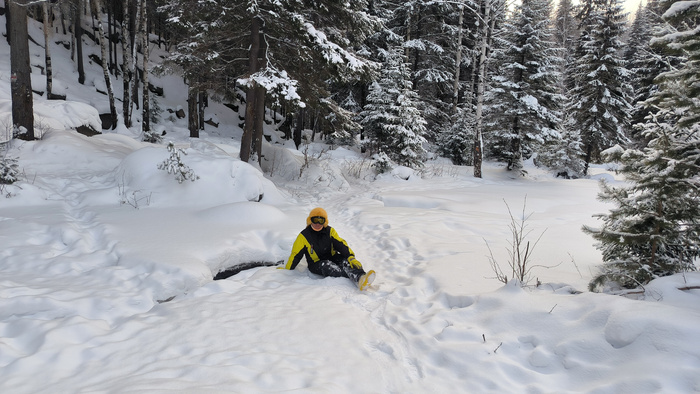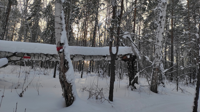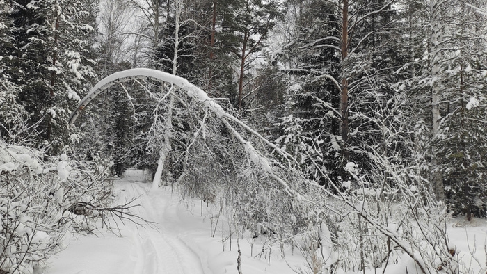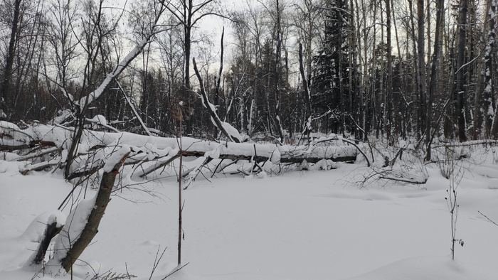 И чё у нас в лесу? А в лесу у нас снега мало - лыжи постоянно шкрябают о чё то: камни/ветки, поваленные стволы и замерзшее лосиное говно.