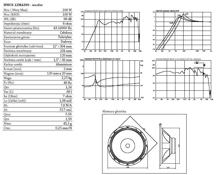 Минусы - высокая резонансная частота (петь будет только от 60 гц и то в ящике 100л.) , маловат диаметр катушки для тканевого подвеса (перекосы на реальных низах) , высокая чувствительность только на СЧ (по графику видно, что зашкаливает именно в диапазоне 2-8кгц).