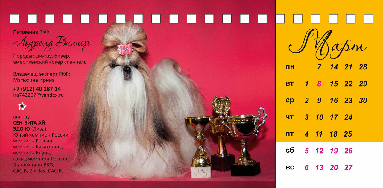 мать: Grand Ch. Rus., J.Ch. Rus., Ch. Rus. Kaz., CW, 3х RKF,