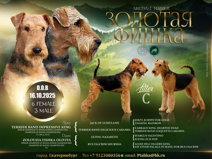 Добрый день. Предлагаются к резервированию щенки породы эрдельтерьер. Есть свободный мальчик и девочки. Дата рождения 16.10.2025. Ркф. Плановая вязка. Клеймо. Документы. Щенки крепкие, яркие, активные и ☝ очень умные. С каждым щенком можно попробовать ходить на выставки!!! 👍 Отвечаем