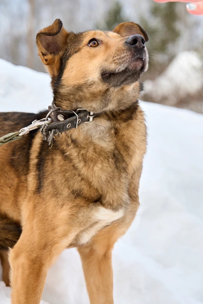 Сейчас живёт в вольере с другими собаками, но очень стрессует. Как только заходит домой – расцветает.