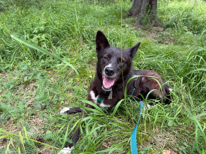 Мелкая компактная (около 15 кг, чуть ниже колена), ласковая и аккуратная. Ранее участвовала в наших проектах и прогулках на природе, легко адаптируется в спокойной обстановке и будет отличной спутницей в семье с детьми осознанного возраста.