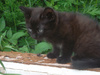 Черный котенок с белой отметиной на груди. Кушает сам, ходит в лоток, игривый, ласковый. В добрые руки бесплатно. т. 8-904-386-28-26