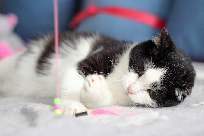 Бабсик обожает играть дразнилками - носится за ними, глаза горят, весь такой стремительный