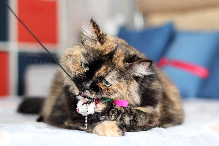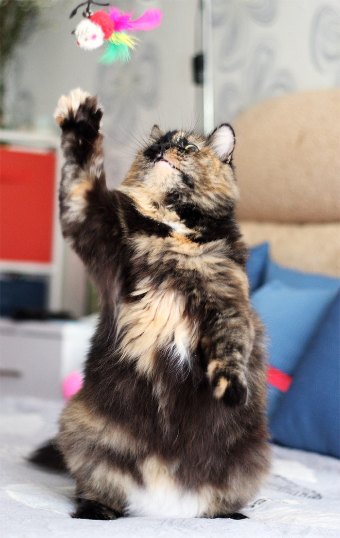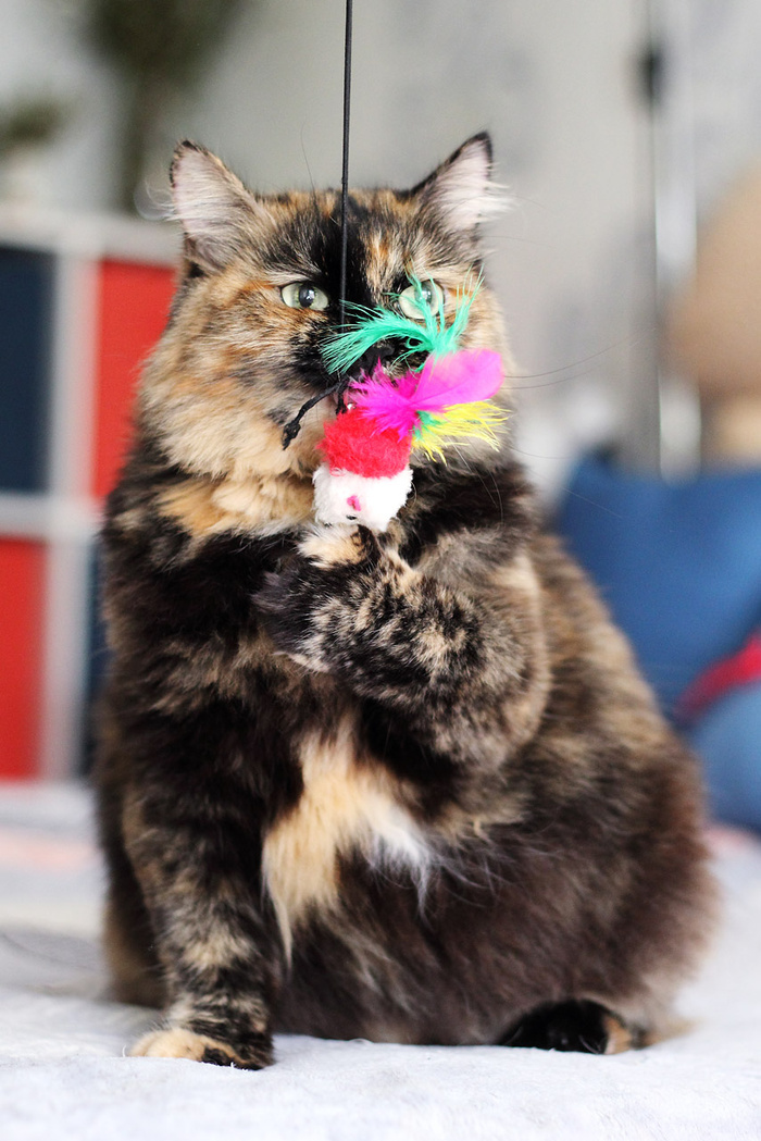 Взбодрить Эни тоже сумеет, предложив вам поиграть в дразнилку. Разве можно отказать красавице? И вот вы уже весело играете вместе, умиляясь кошачьей грацией и переливами пёстрой шубки.