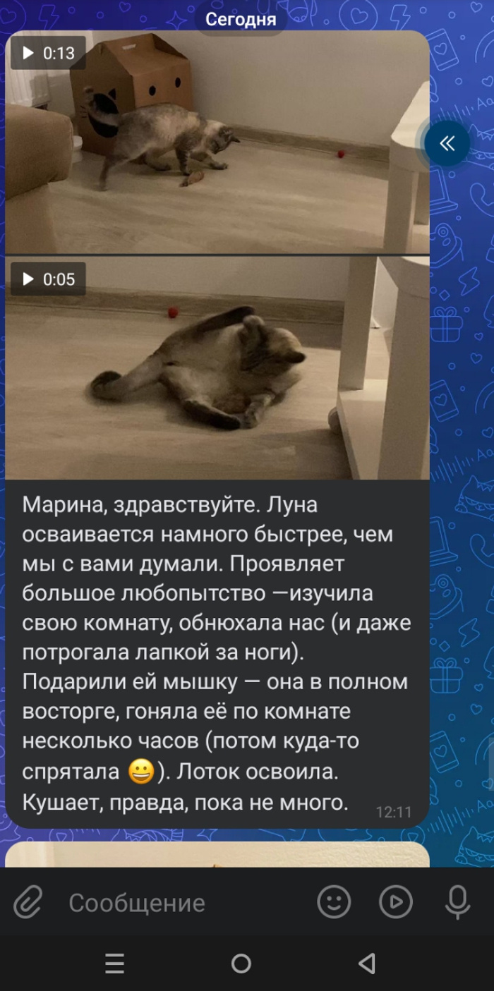 Со мной уже ручная, просто девочке нужно время понять, что она в безопасности.