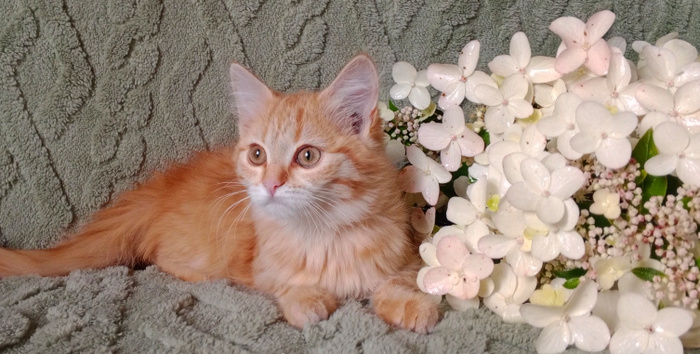 Рыжая кошечка, 5 месяцев. Девочка прибилась к дачникам, хотя явно бывшедомашняя, поиск хозяев результатов не дал. Очень ласковая и контактная малышка. Отдается в самые заботливые руки с ненавязчивым отслеживанием судьбы.