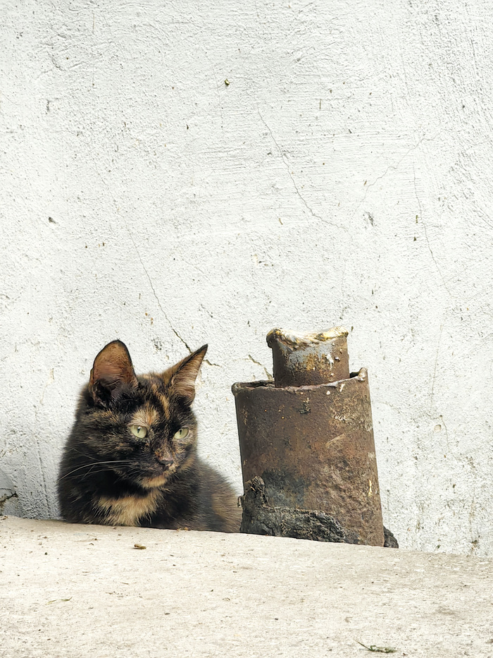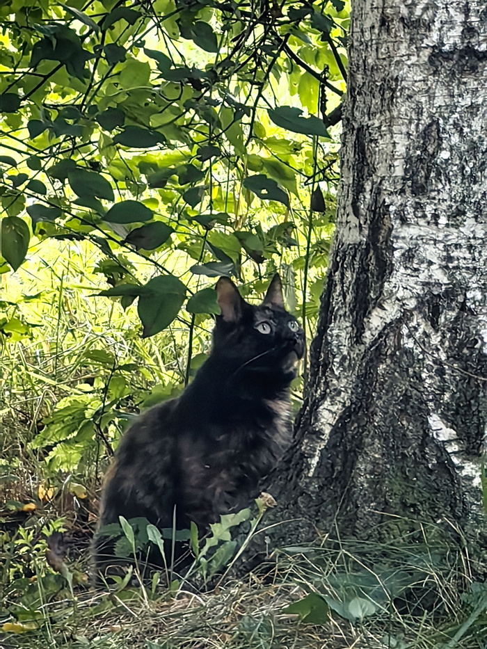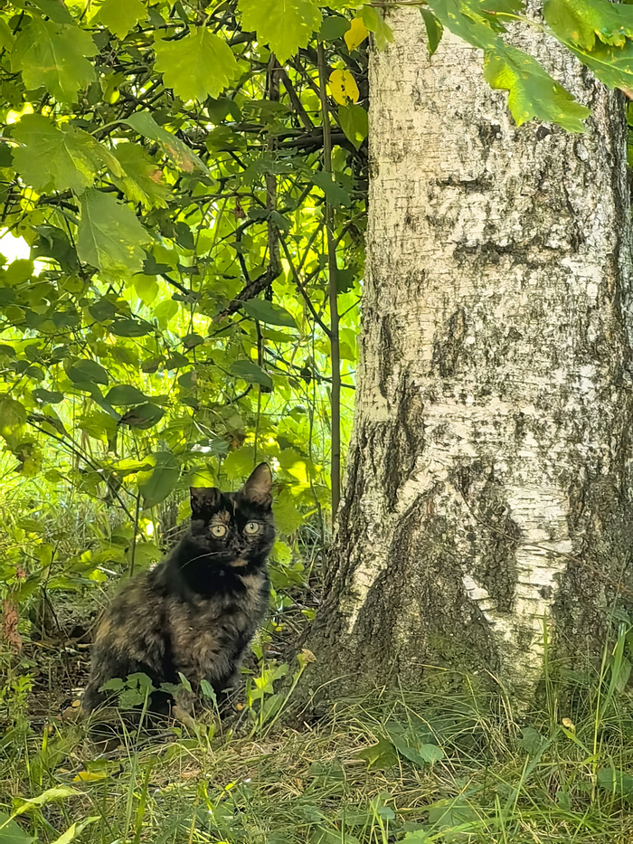 На вид кошечке до года, похожа на подростка. Пугливая, но если её покормить, сразу становится вашим лучшим другом.