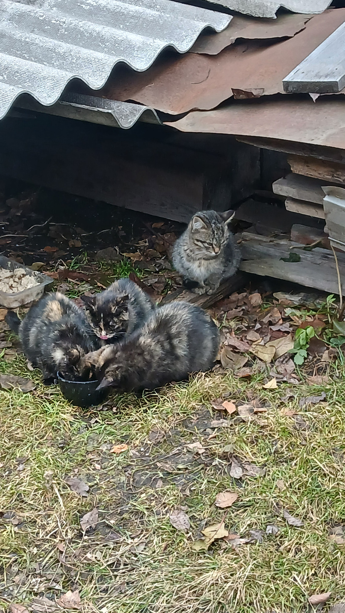 4 котенка на даче (три девочки трехцветки, серый мальчик, ВСЕ стерилизованы), здоровые, активные, ушки чистые, им примерно около 4 месяцев, едят ВСЁ, диковатые, но не агрессивные передам в добрые руки.