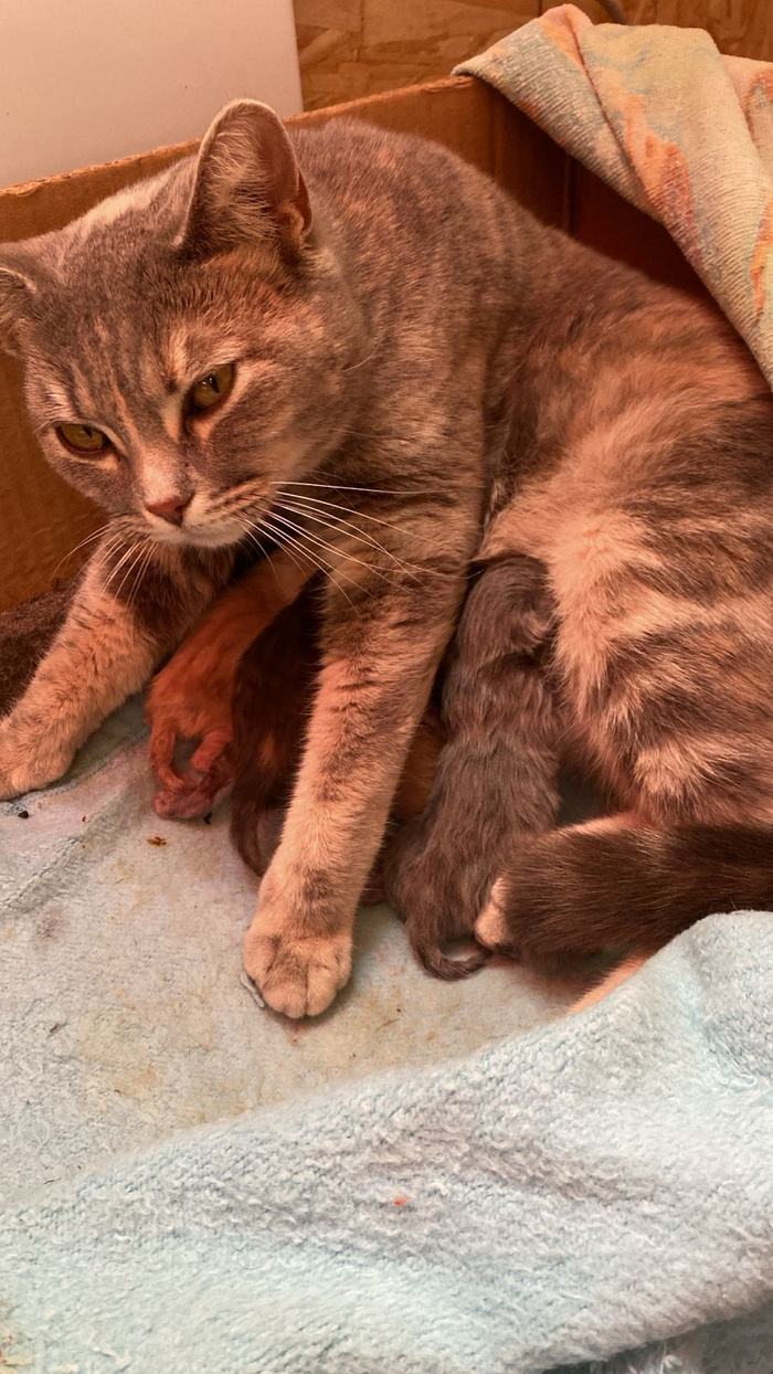 Кошка вчера успела родить 4х котят.... И кошка и папашка кот довольны...а мы в ужасе...