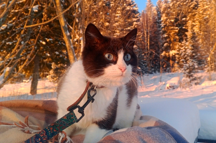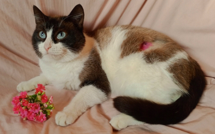 Бруна, спокойная кошка, красивый окрас🤎💙