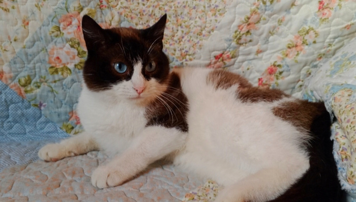Характер-просто чудо, спокойная, ласковая, тихая, лоток на 5. Подойдёт людям в возрасте, точно не доставит никаких хлопот. Очень необычный окрас в коричневых тонах и небесно-голубые глаза. Отдается в самые заботливые руки с ненавязчивым отслеживанием судьбы.