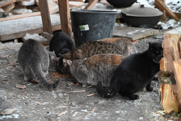 В коттеджном поселке обитает семья из 8ми котов и кошек. Всем меньше года, но они уже не малыши.