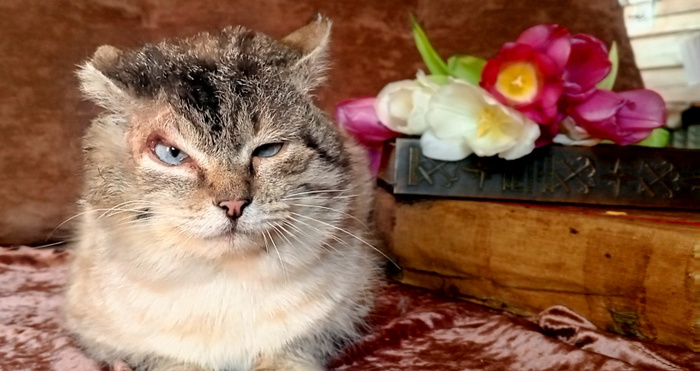 На лицо ужасный добрый он внутри. Парень много натерпелся за свою жизнь, говорят был хозяйский, потом оказался на улице. В итоге отмороженные уши, старая травма на морде из-за которой одно веко немного вывернуто. Но такая жизнь нисколько не отразилась на его характере, абсолютно добродушный, ласковый, любопытный, очень благодарный, не конфликтный с сородичами кот. Очень хочется верить, что и для такого "красавчика" найдется место в чьем-то сердце ❤️кастрирован, обоаботан, лоток на 5.