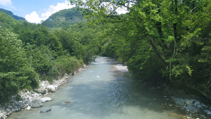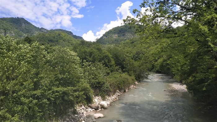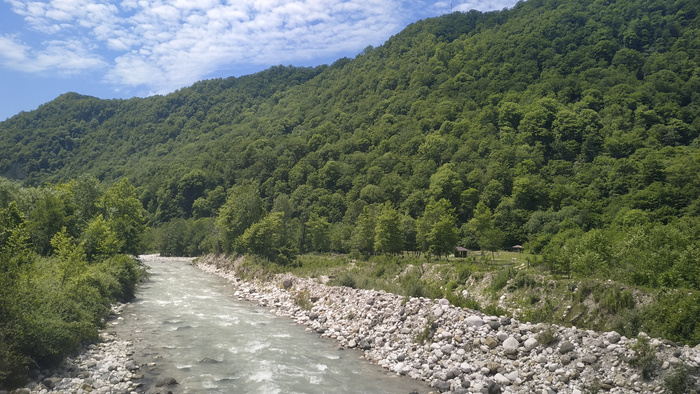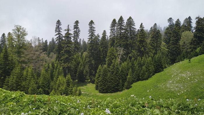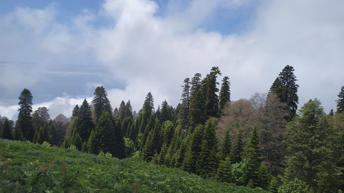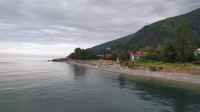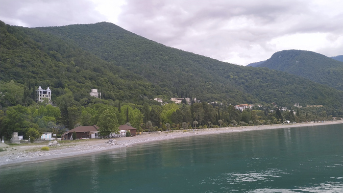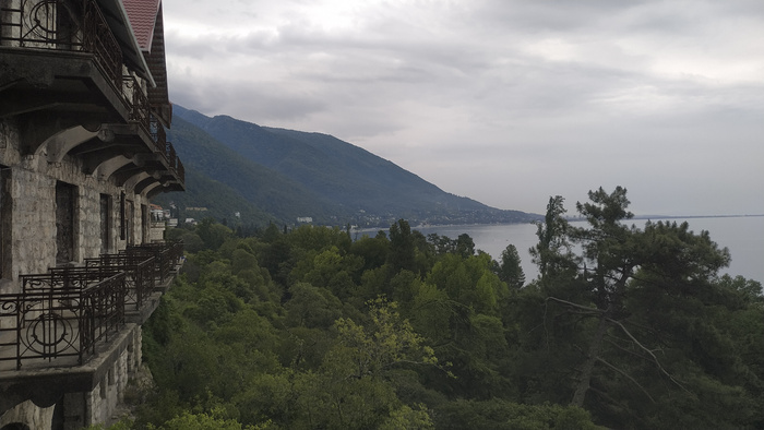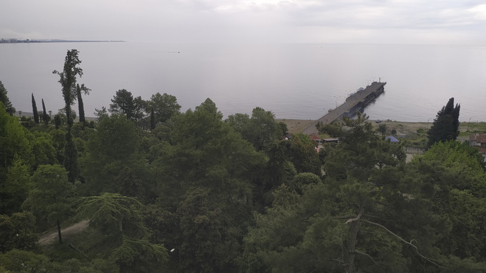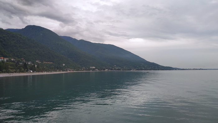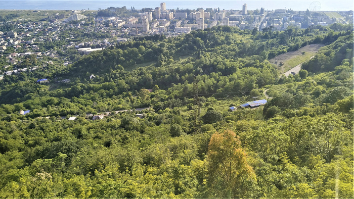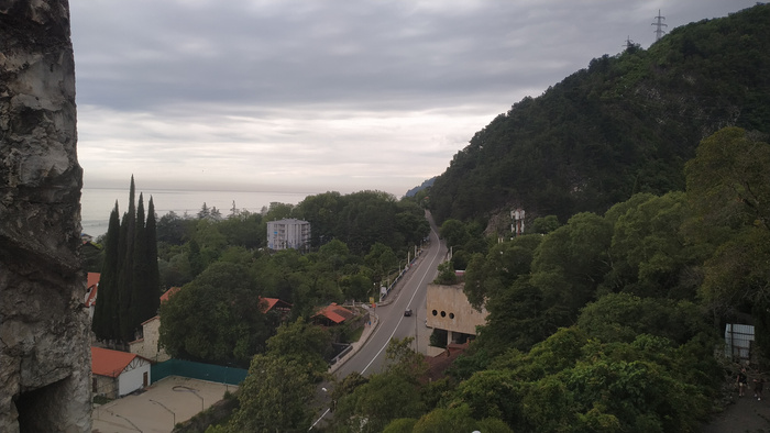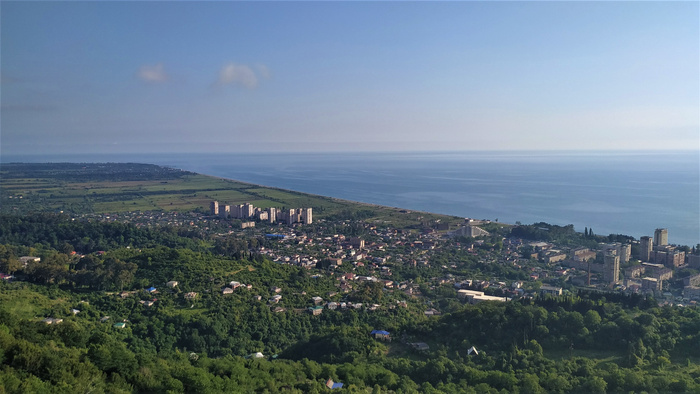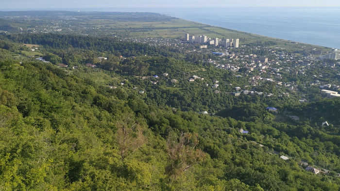 В прошлый раз мы не успели съездить в горы, поэтому было решено взять Уаз с водителем и отправиться на гору Мамзышху. По пути на гору останавливаемся на смотровой, откуда открывается вид на Гагру