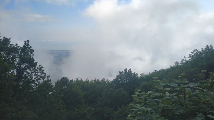 Выше есть еще одна, не оборудованная смотровая, но облака помешали сделать фото