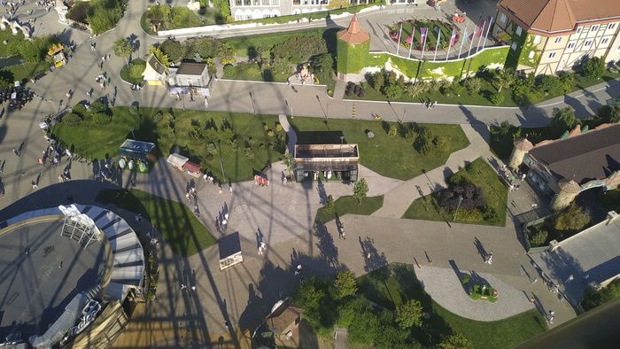Входной билет стоил на то время 2500 р с человека и можно кататься пока не надоест. Но есть нюанс! Колесо обозрения находится за территорией парка и в стоимость не входит. Вот так.