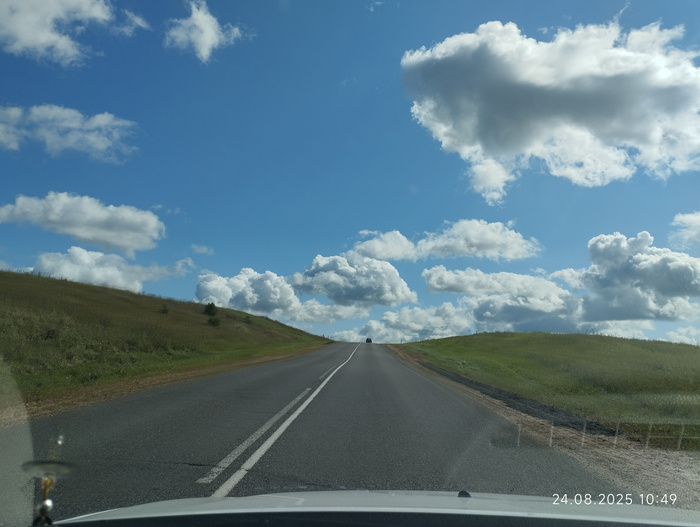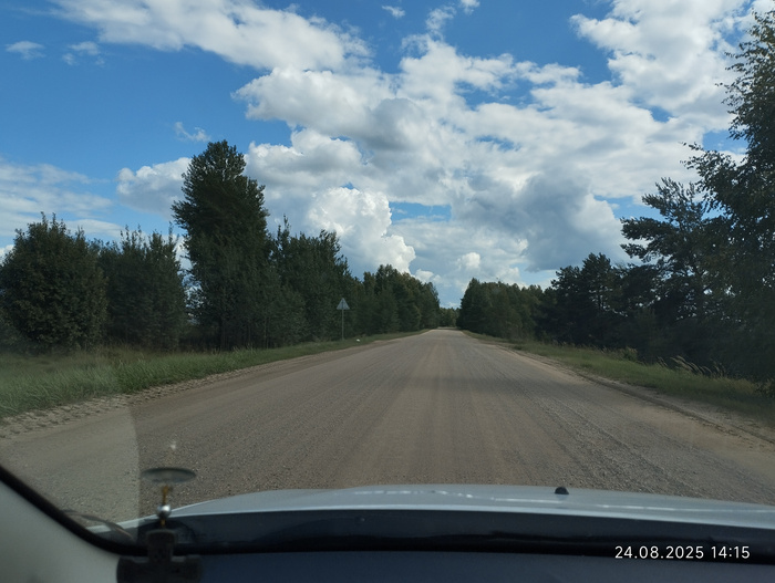 Поехали . Отличный асфальт закончился через пару километров .Пошла грунтовка. Я прикалываюсь - " Вот она Россия. Враг не пройдет !"