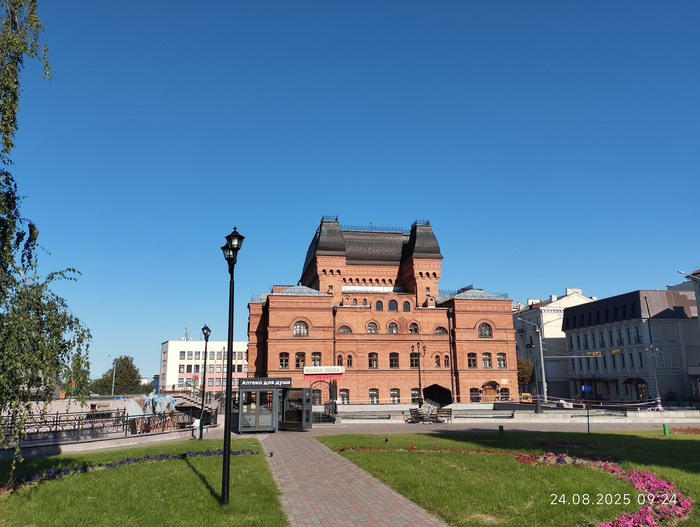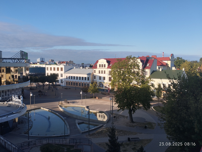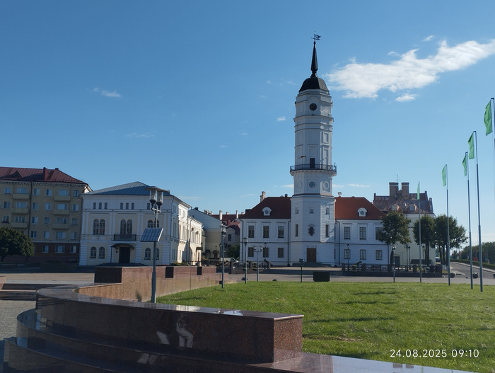 От Мира недалеко , км 30 . Пора обедать , припарковались возле Ратуши .