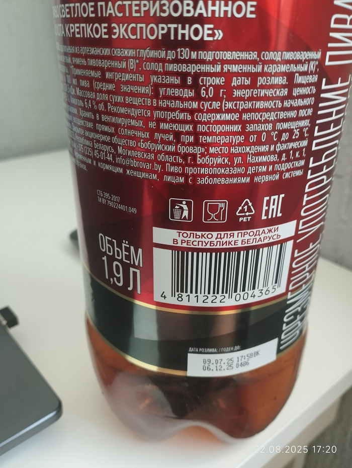 Наблюдение .Пиво продают в 1,9 л бутылках .