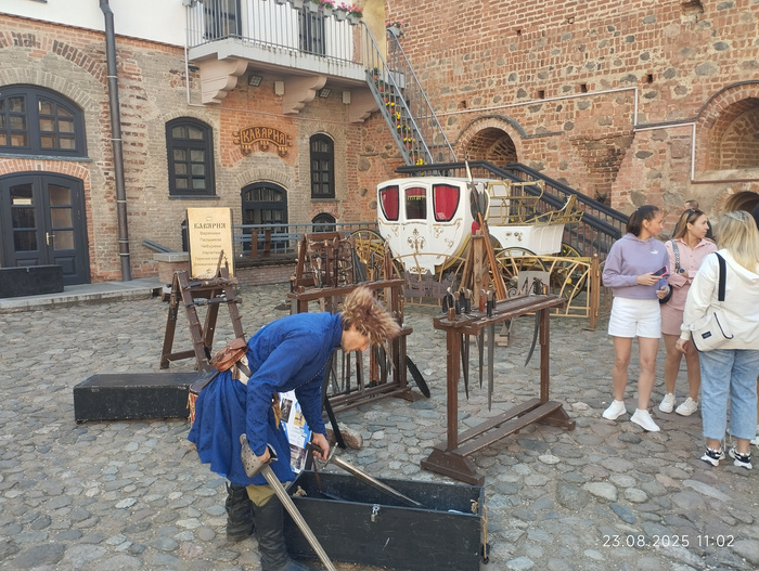 Дальше перед замком, перед навесным мостом очередь человек 200, за воротами, уже за стеной , ещё одна касса . Там человек 50 было.