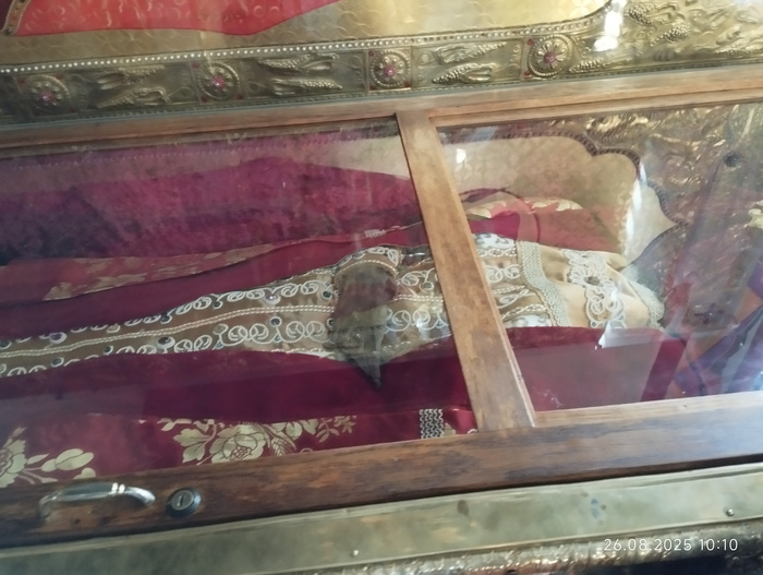 Мощи святых , руки из под плащеницы видно