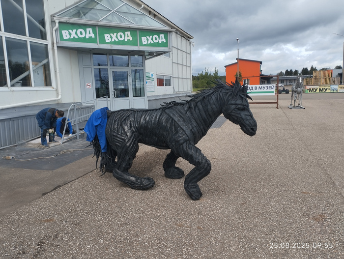 На постаменте ,у проходной завода стоял современный его сынок .Чуть грубее формы, но все тот же узнаваемый облик, как у папы