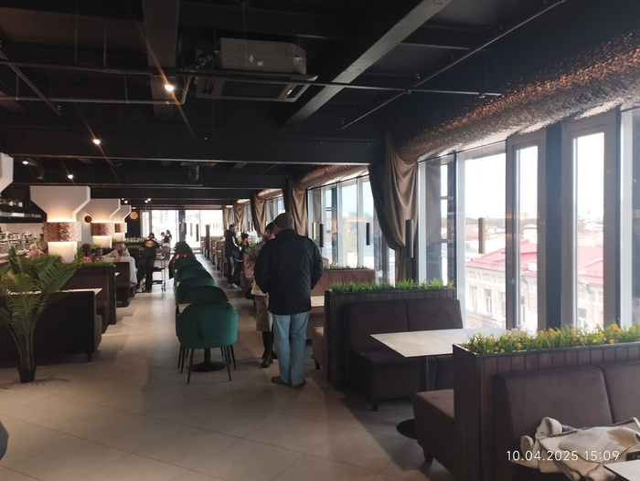 За одно и вспомнили ,что вчера на экскурсии девушка советовала покушать здесь, на верхнем этаже .Идем туда.