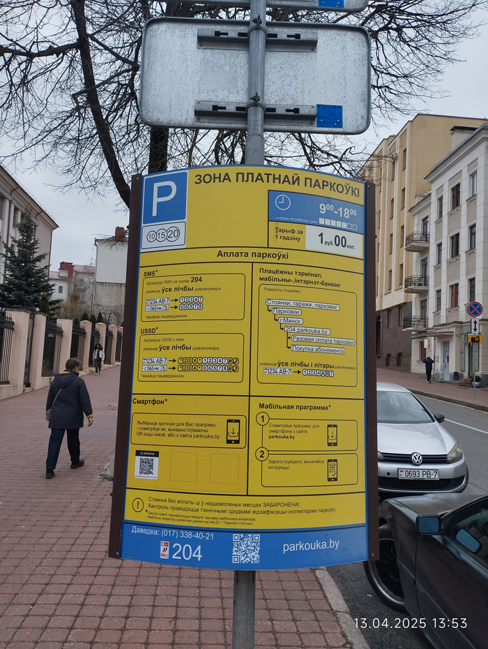 Парковка в центре Минска платная.( в рабочие дни место найти =большая проблема)